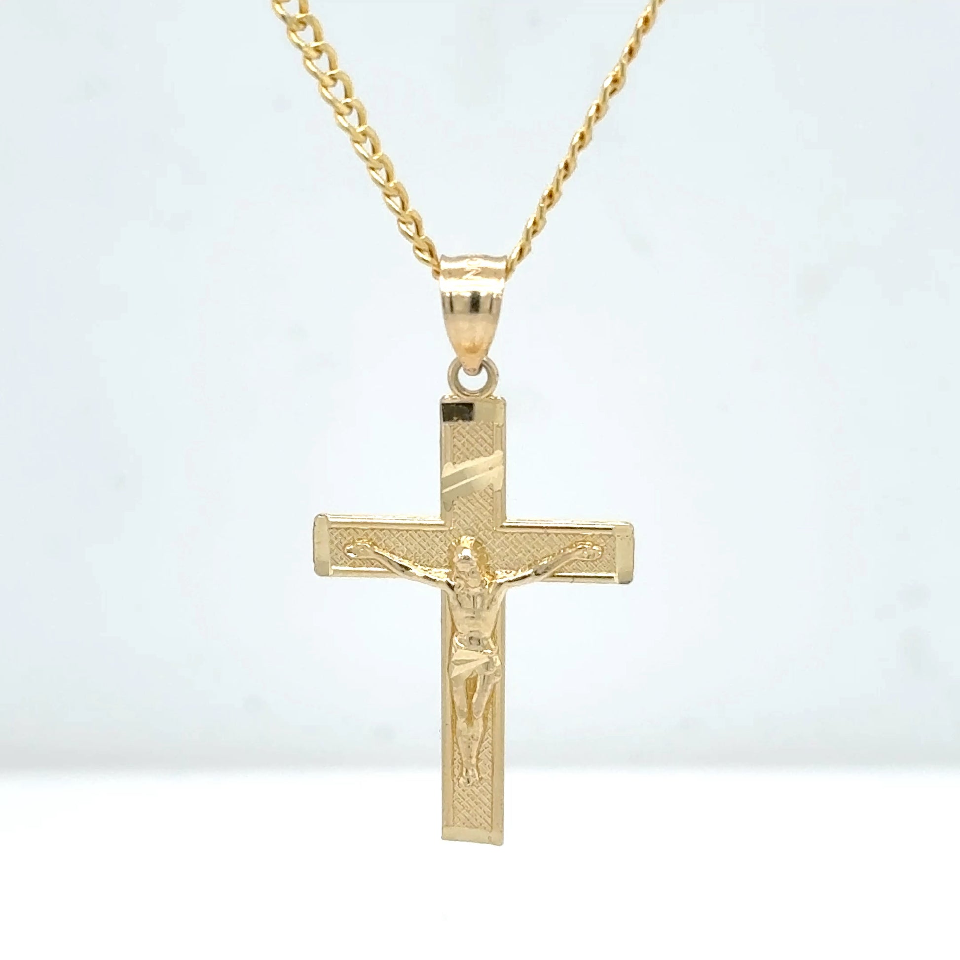 Elegant and timeless, this 14K Yellow Gold Crucifix Cross Pendant Necklace is a meaningful addition to any jewelry collection. Crafted in genuine 14K yellow gold, the pendant features a traditional crucifix with raised Christ figure and textured detailing on both front and back, combining faith and craftsmanship in a design that is both classic and refined.